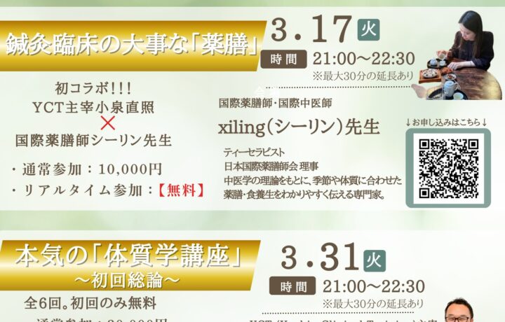 YCTの講義は、鍼灸師としての知識と技術を深化・成長させるために、多岐にわたるテーマをカバーしています。